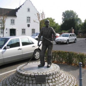 Seit April 1999 ziert eine Bronzefigur des Grasbürgers den Randerather Marktplatz.